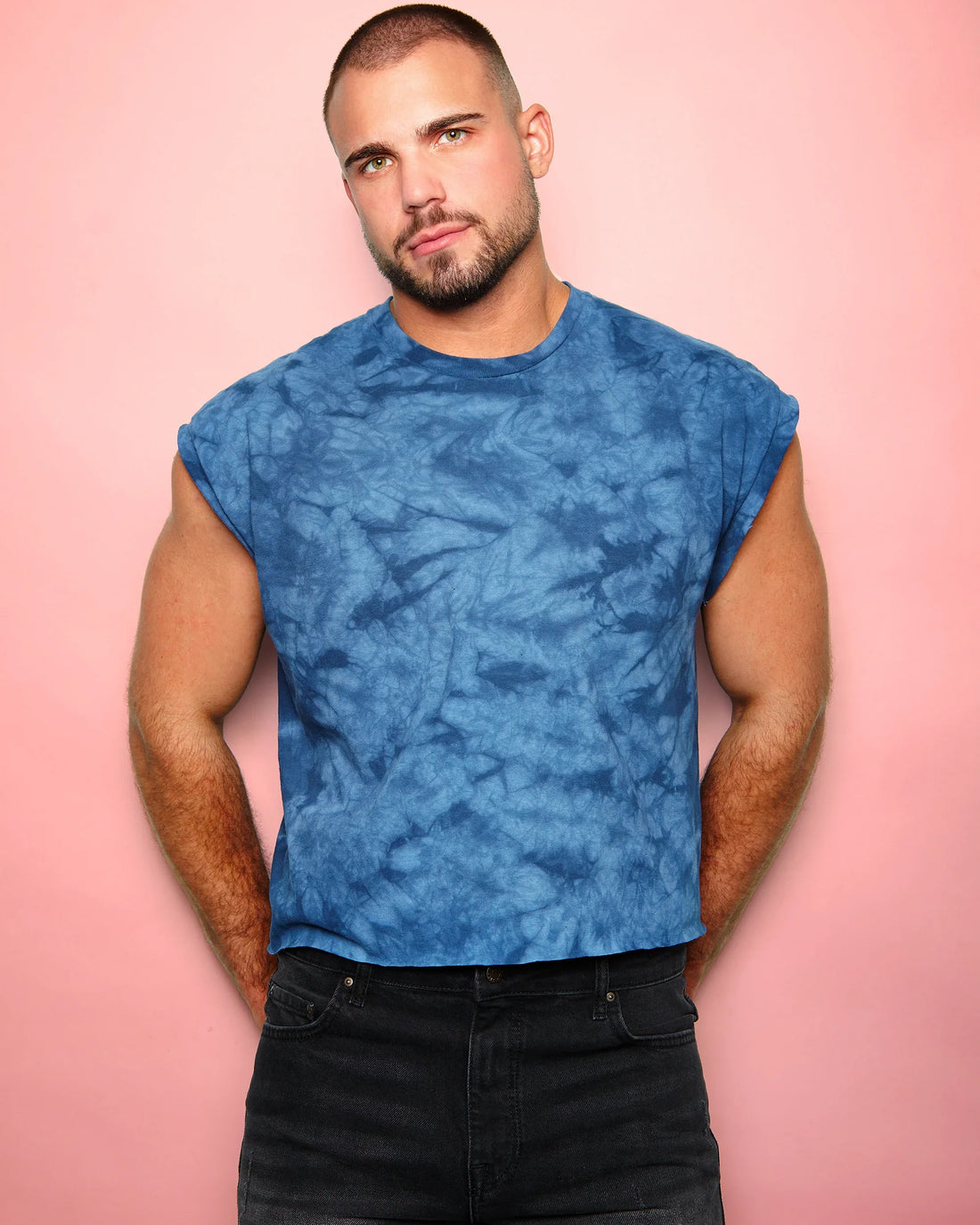No Print just vibes: Navy tie-dye low cut cropped tee