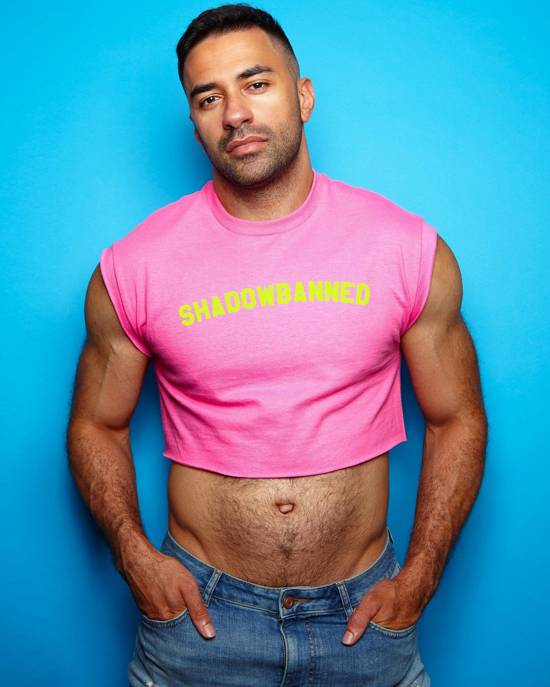 Fluorescent yellow flock shadowbanned - pink crop top