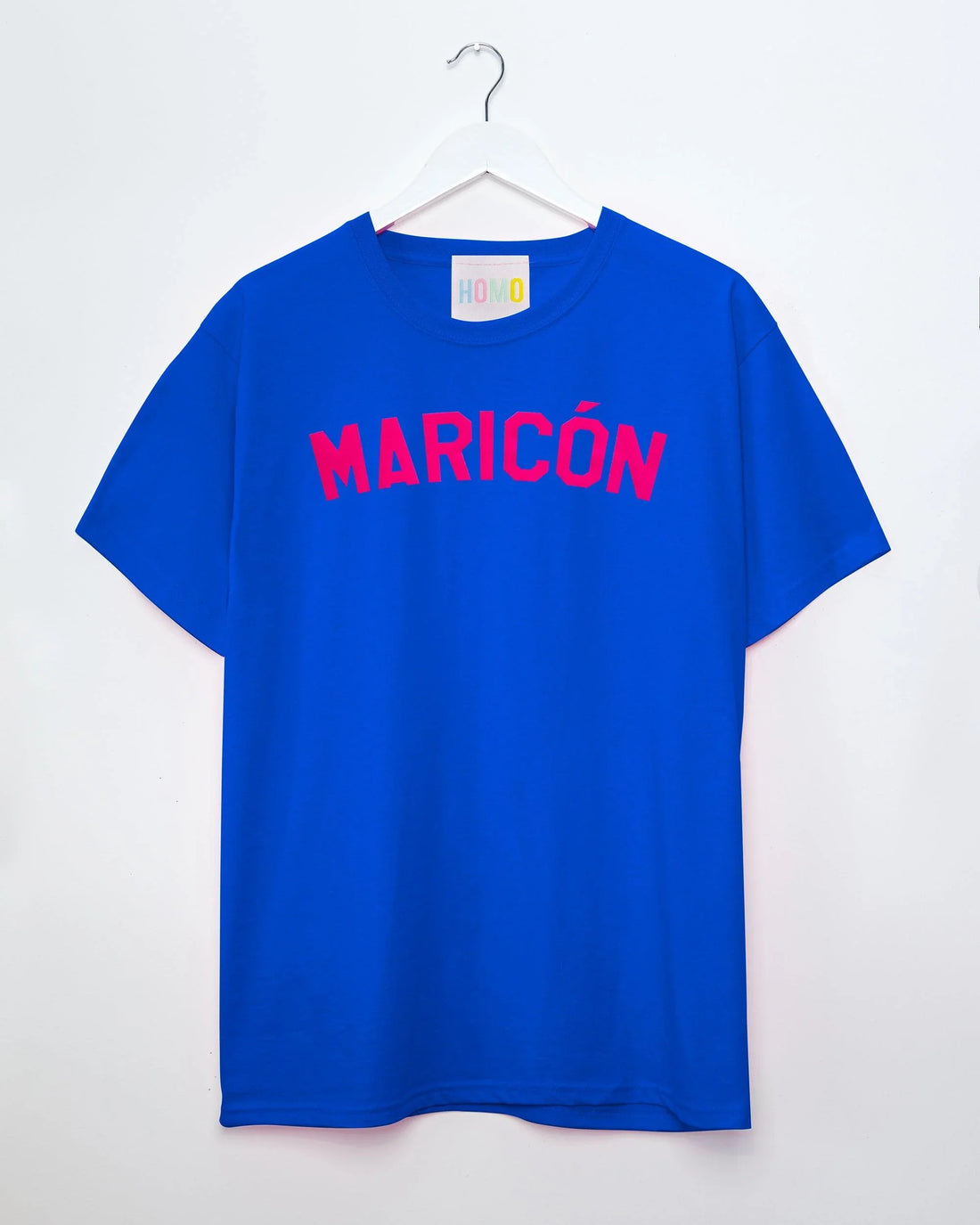 Fluorescent pink flock maricón - blue tshirt
