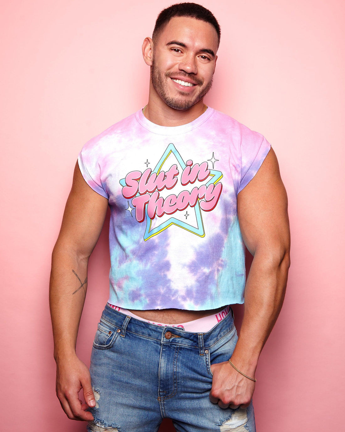 S/ut in theory on cotton candy tie-dye tshirt / crop top