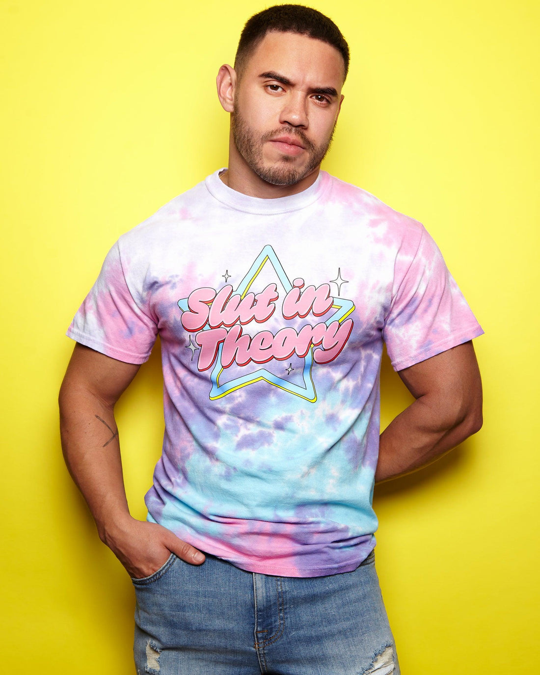 S/ut in theory on cotton candy tie-dye tshirt