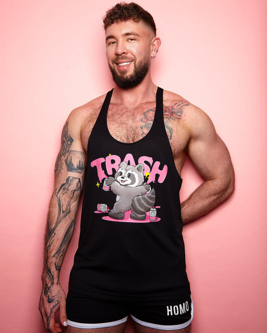 Norman the Racoon Spray Painting Trash on Black - tank top