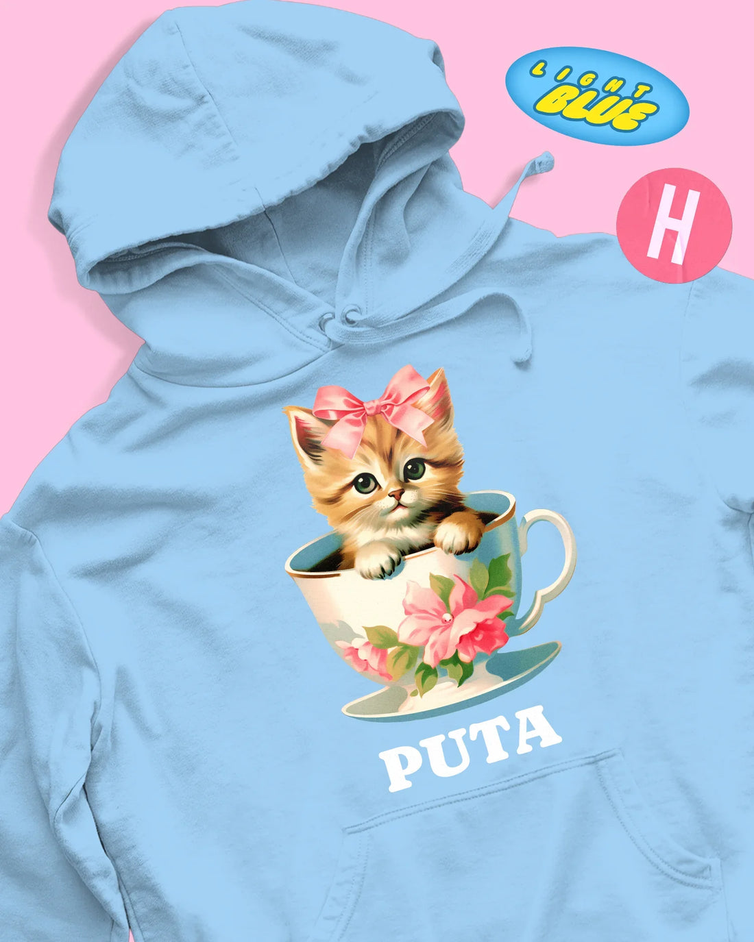 Adorable teacup kitten soft style hoodie - light blue