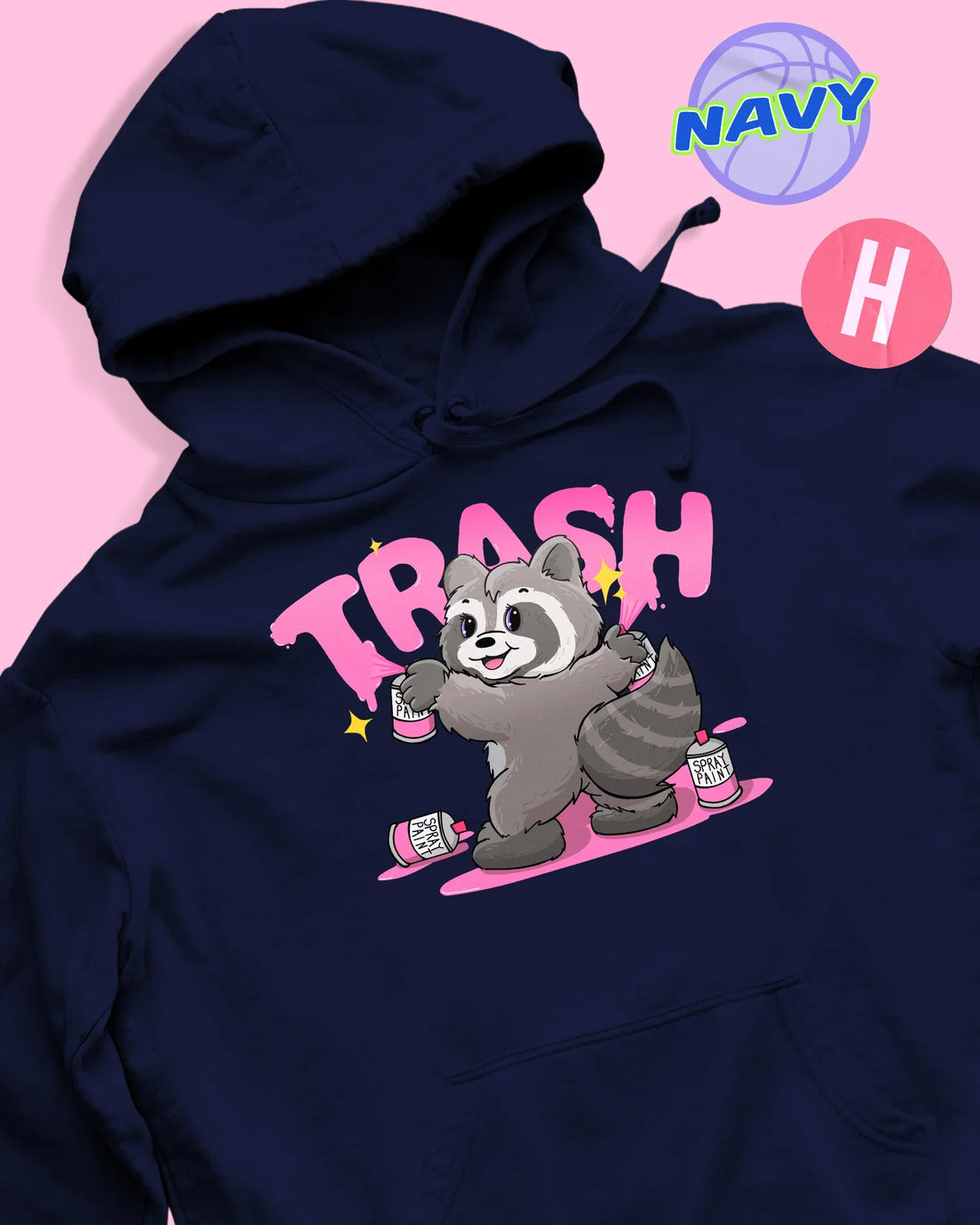 Trash raccoon soft style hoodie - navy