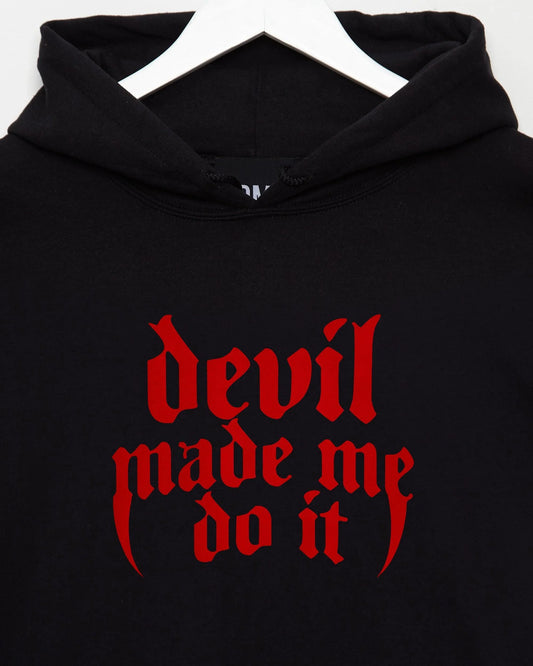 Devil made me do it soft style hoodie, red flock - black