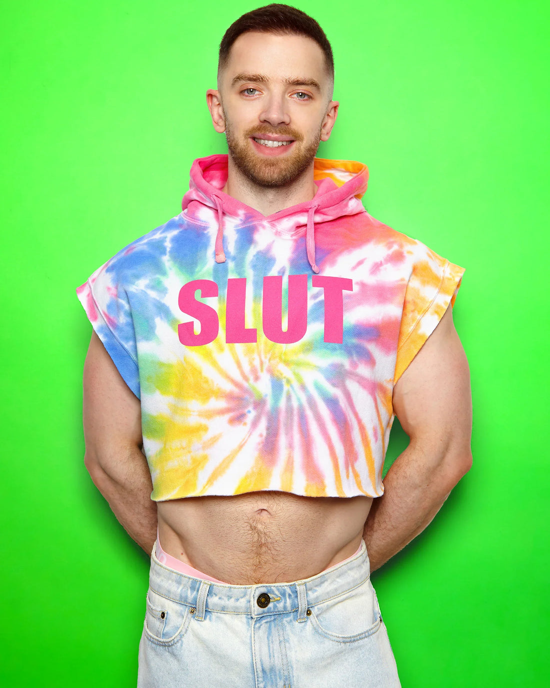 Pink flock S/ut on tie-dye - hoodie crop top
