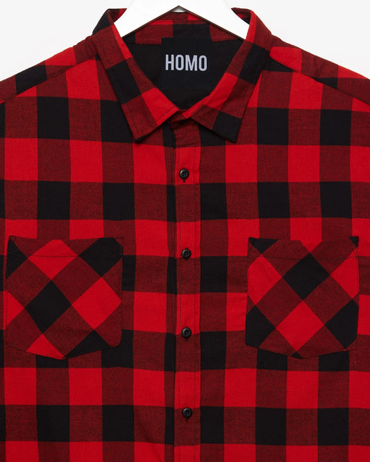 P*ppers 98 sports jersey style on checked flannel cropped shirt - Red and black