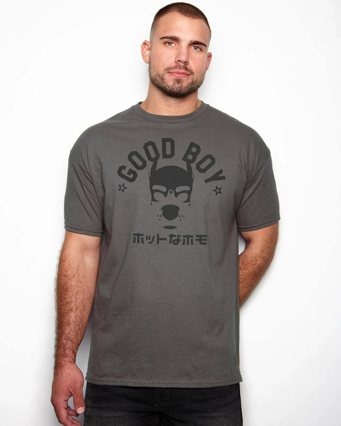 PUP Collection: GOOD BOY, Pup mask style, tee - charcoal