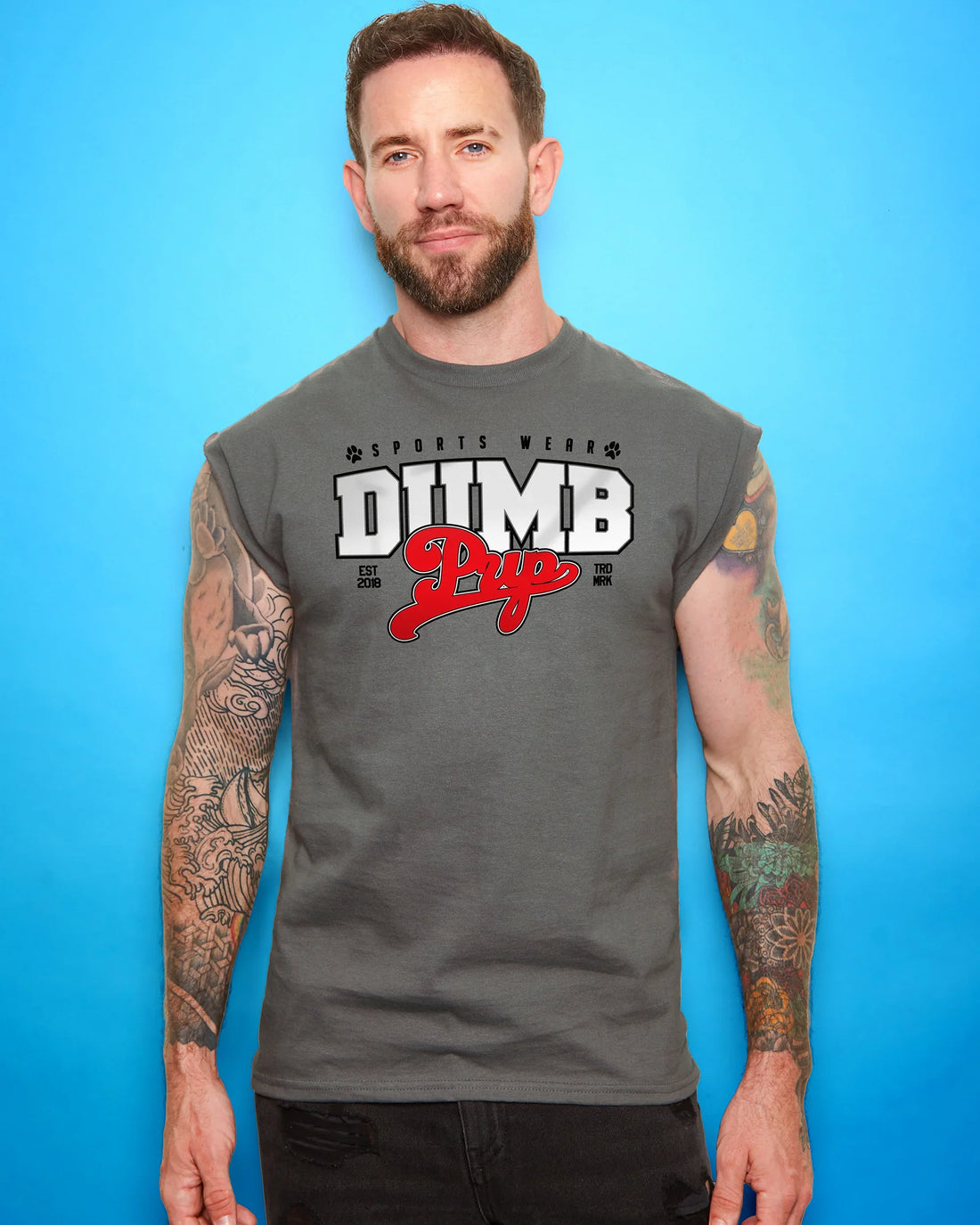 PUP Collection: DUMB PUP variety style, sleeveless tee - charcoal