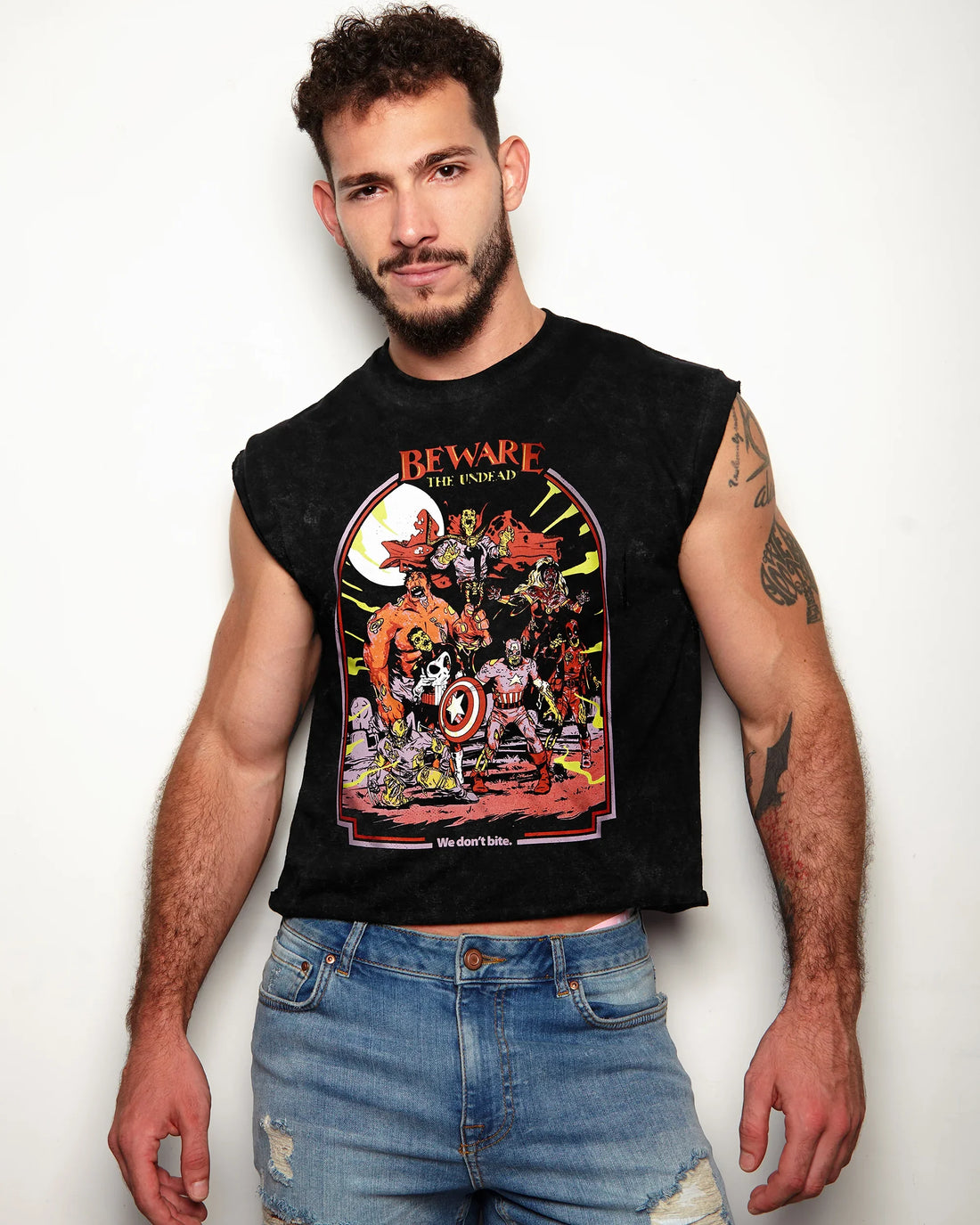 Official Marvel Comics, We Don't Bite on black Stone Wash - low cut cropped tee