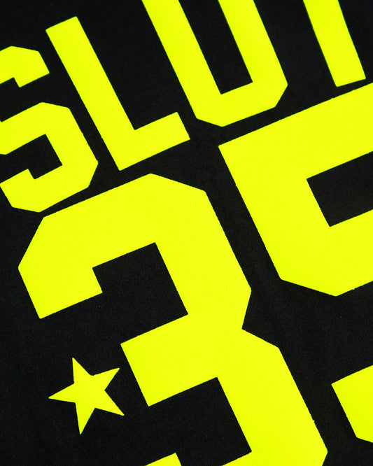 Sports jersey S/UT 35 - fluorescent yellow flock on black sleeveless tshirt