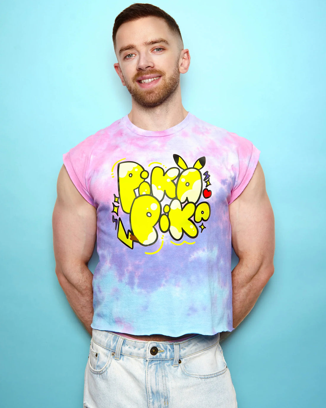 Gaymer: Yellow slogan on on pink tie-dye - low cut crop top