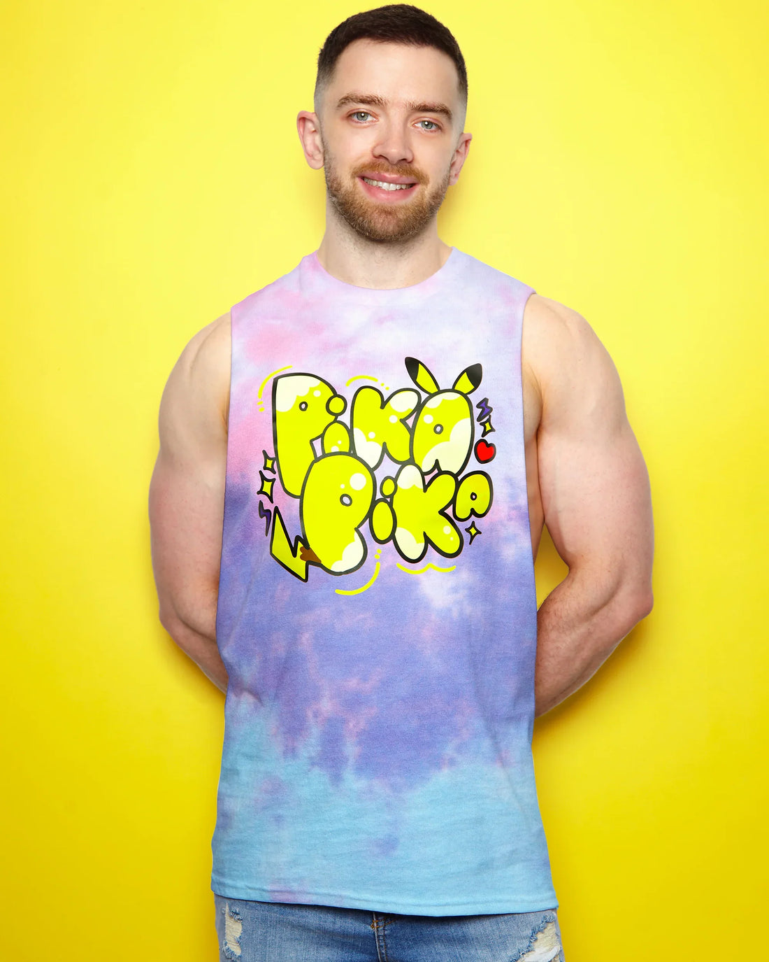 Gaymer: Yellow slogan on on pink tie-dye - sideless tshirt