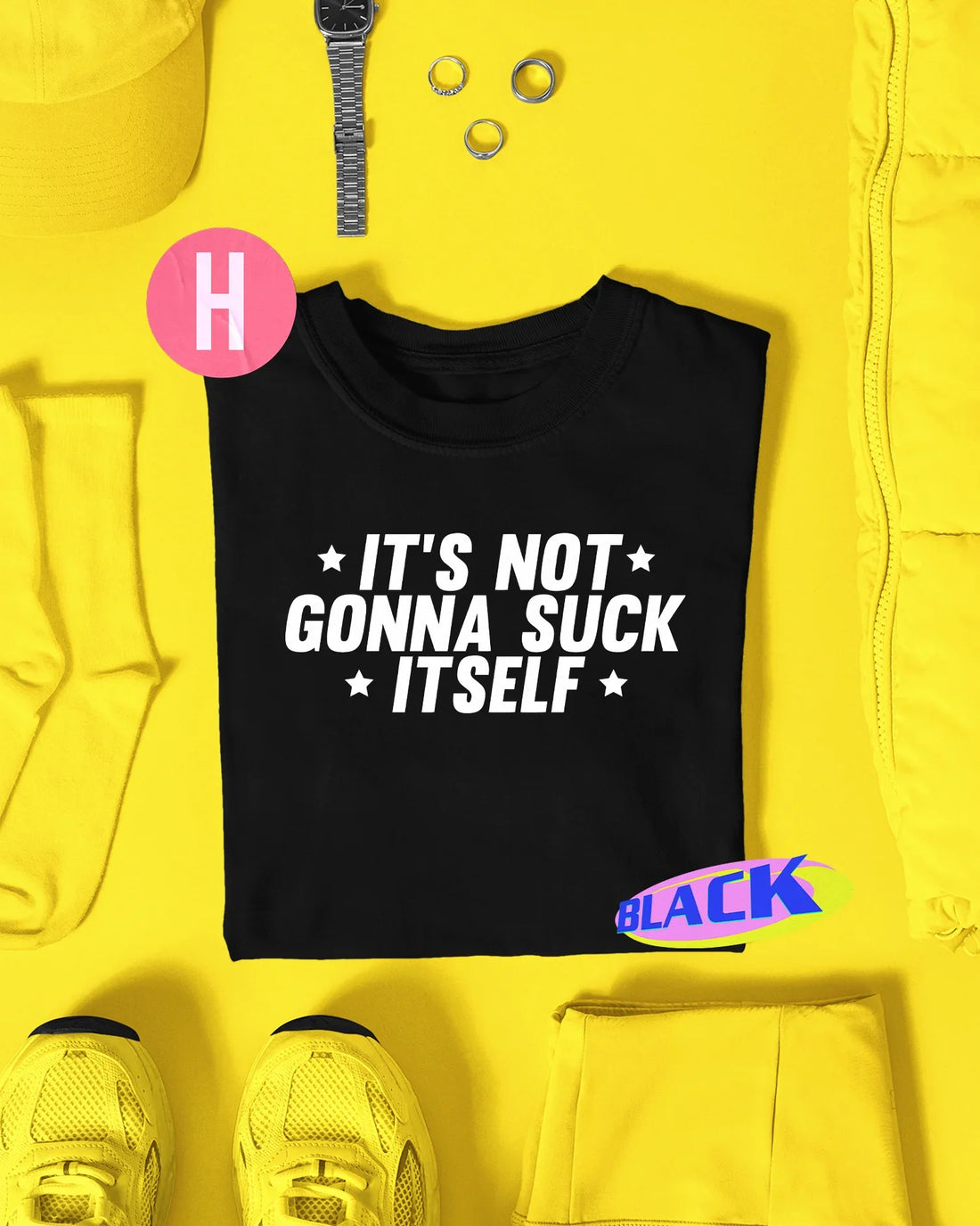 ITS NOT GONNA SUCK ITSELF slogan on black- tee