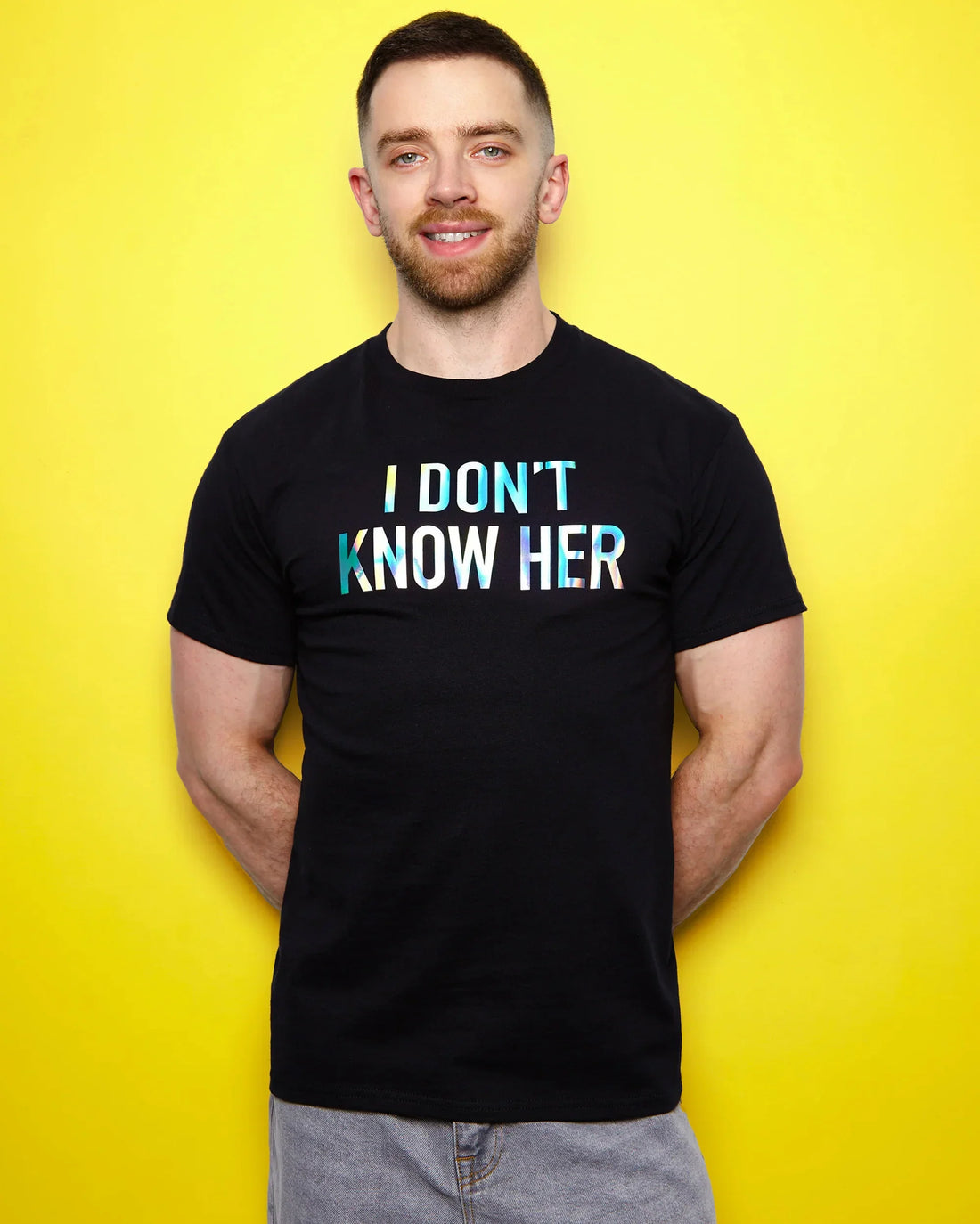 I DON'T KNOW HER hologram on black - low cut cropped tee