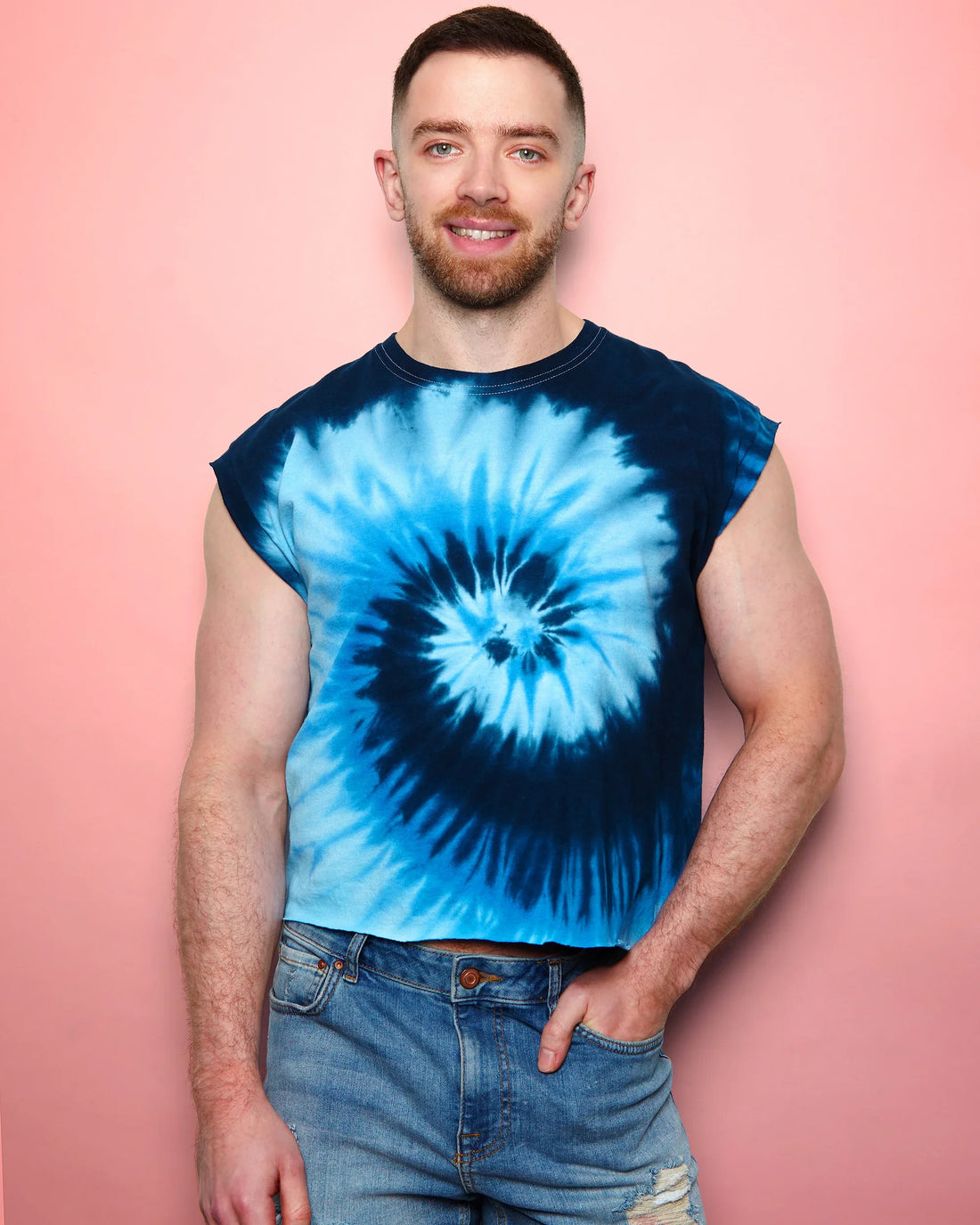 Himbo on pink tie-dye - sleeveless low cut cropped tee