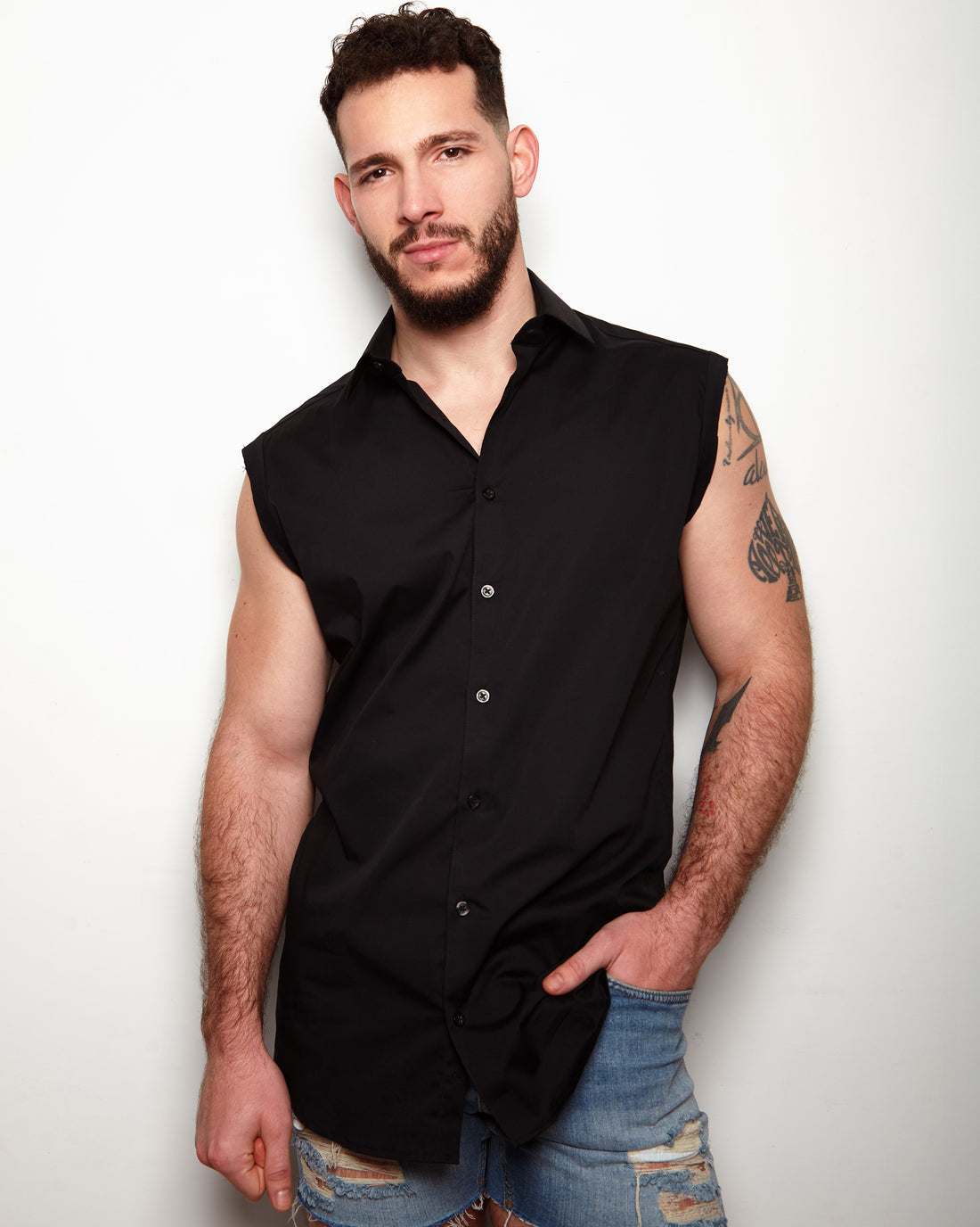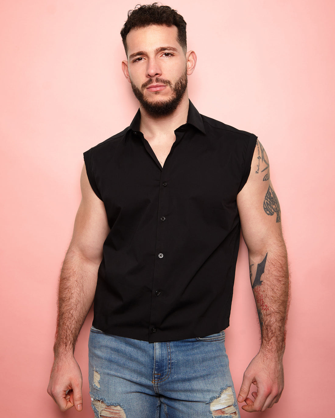 BAD BOY in flock distressed, low cut cropped tee - red/black