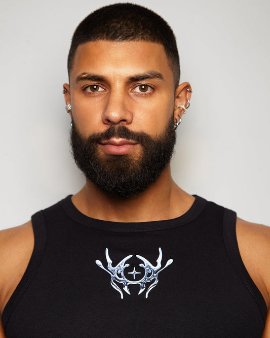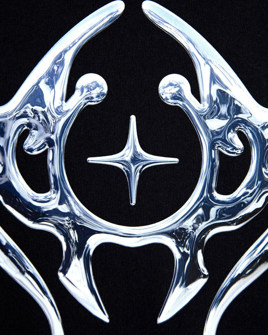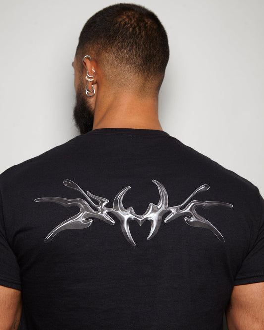 NXS001: Gunmetal style print on black heavy weight oversized tee.
