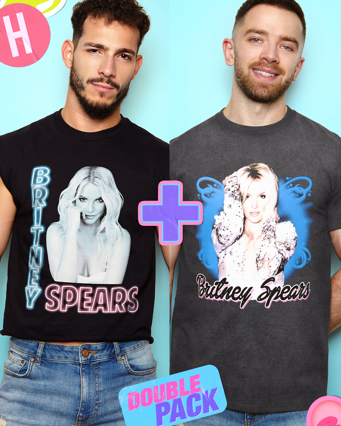 Britney, Low cut cropped tee + tee - Double pack