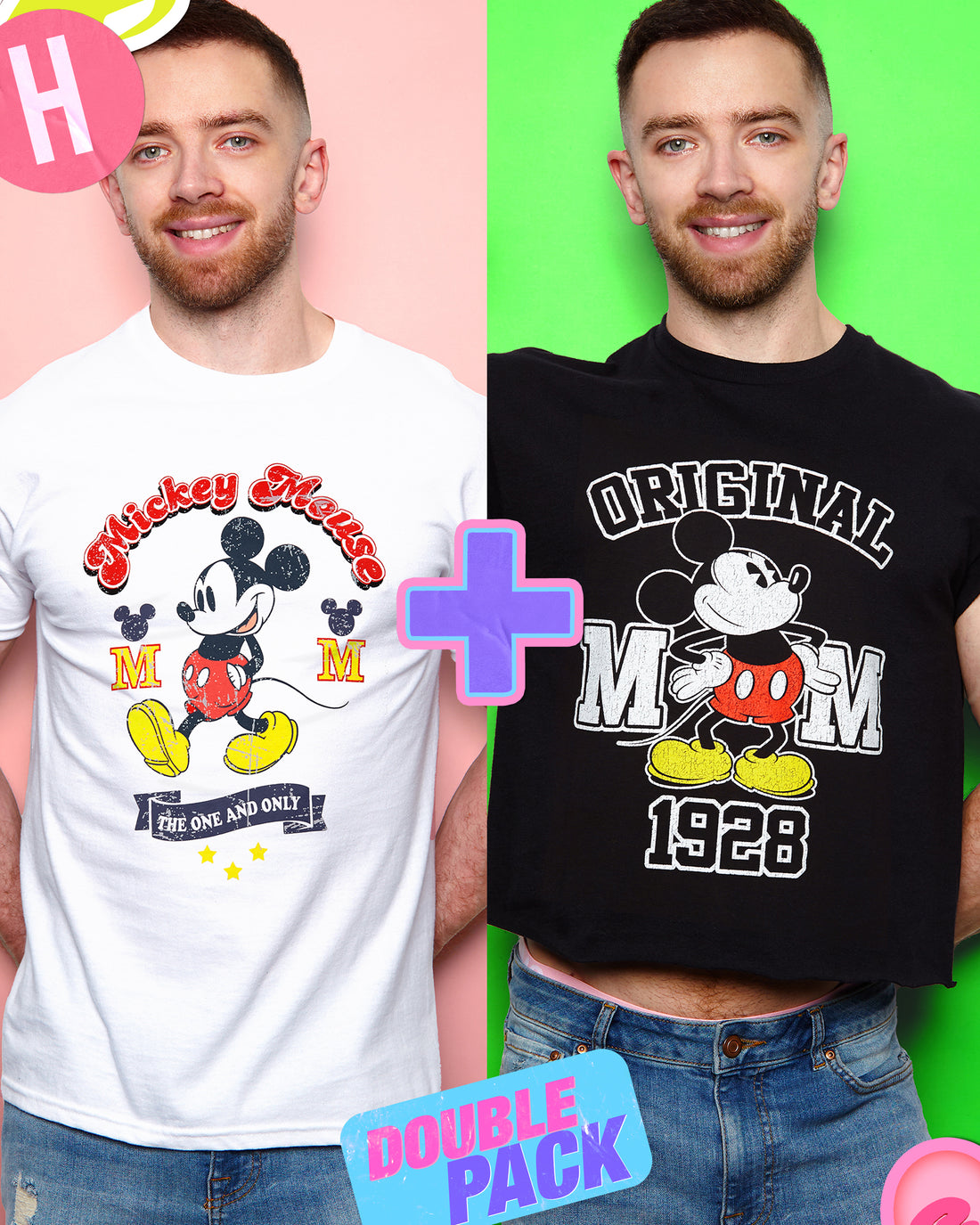 Micky Mouse, low cut cropped tee - Double pack