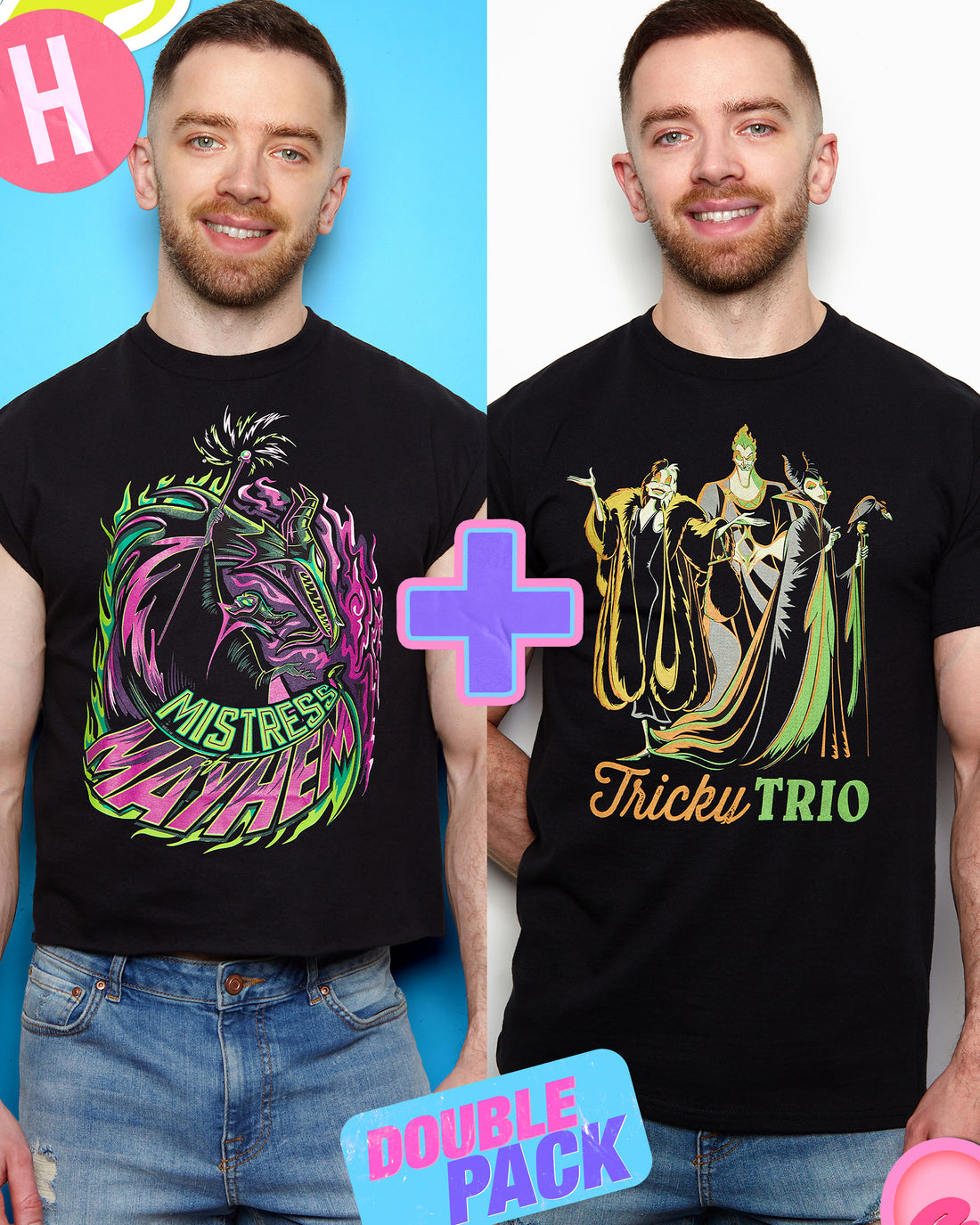 Disney villains, low cut cropped tee + tee - Double pack
