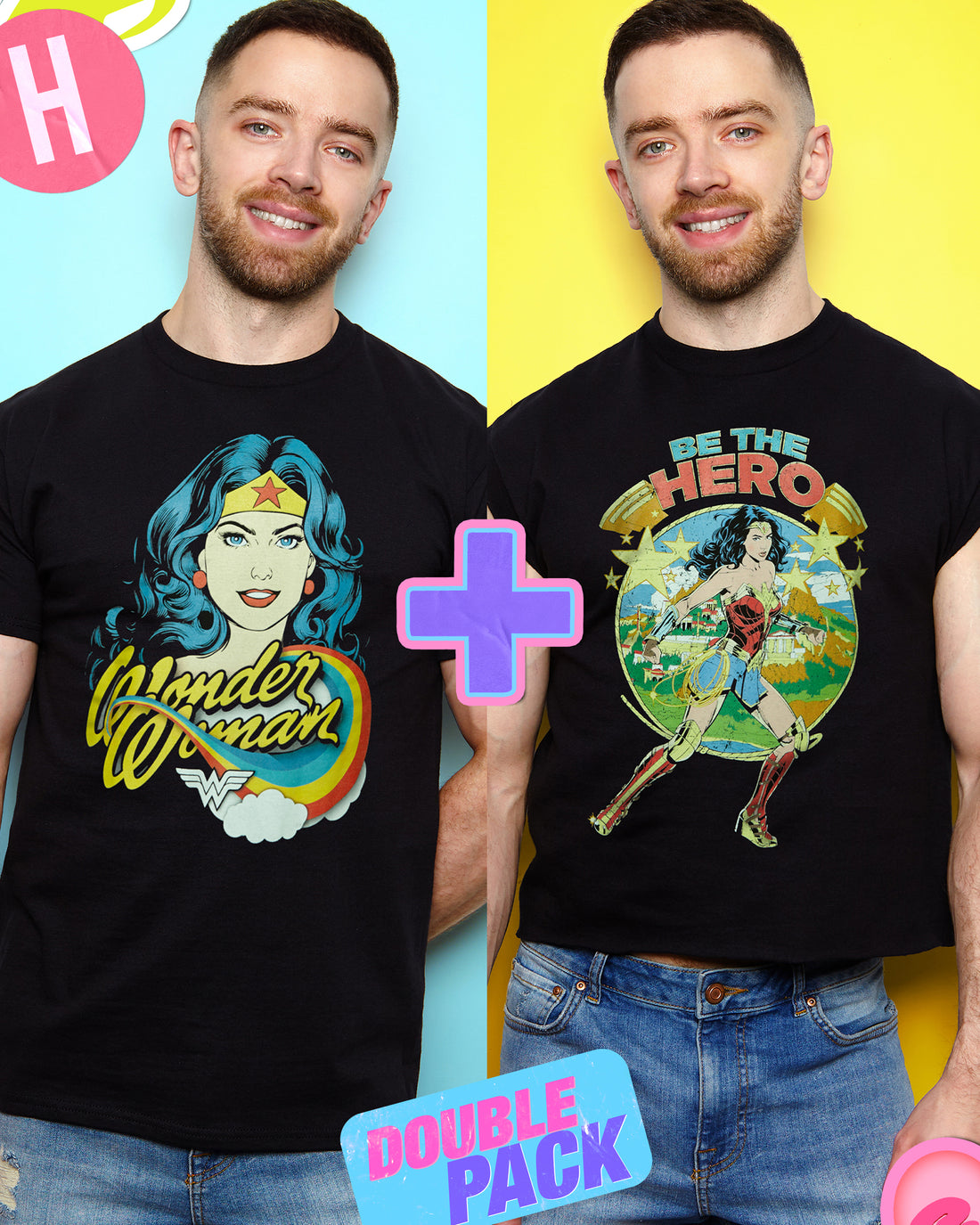 Wonder Woman, low cut cropped tee + tee - Double pack
