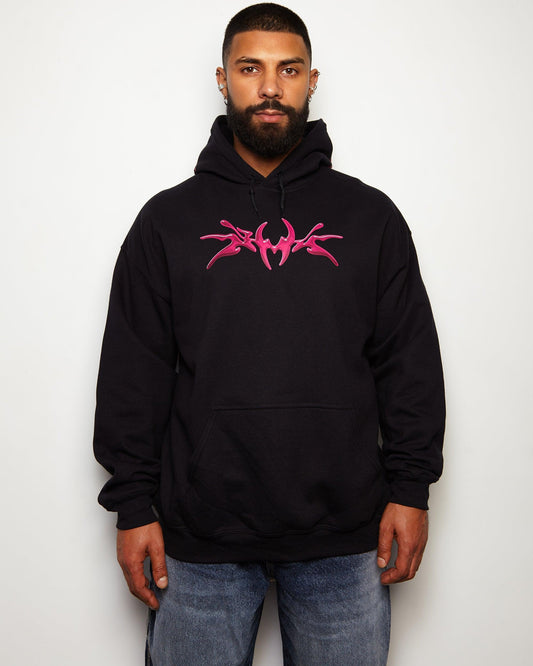 NXS011: Metallic pink style print on black oversized pullover hoodie.