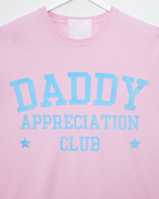 Daddy appreciation club, light blue flock on pink - mens tshirt