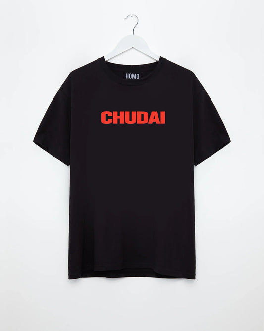 HOMO Logo, fluorescent yellow flock on black tshirt