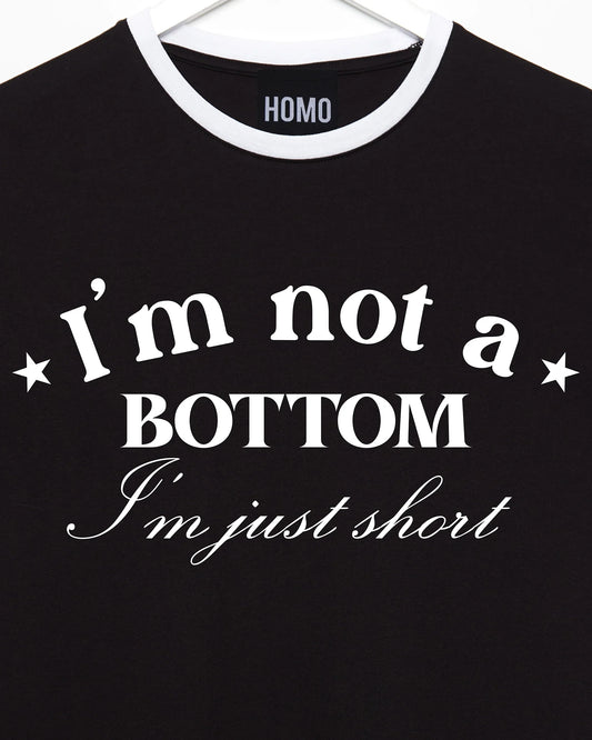 I'm not A BOTTOM i'm just SHORT, ringer tee - black/white