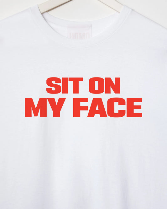 Sit on my face, red print on white - tshirt