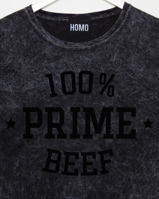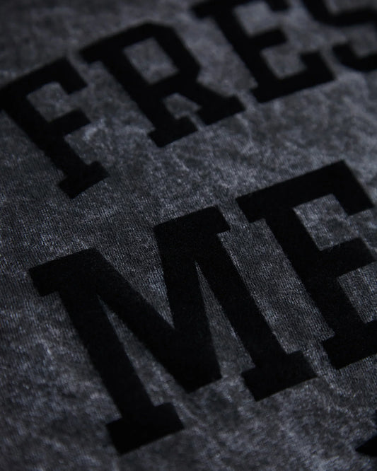 Fresh Meat - black flock on stone washed black sleeveless tshirt