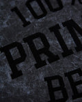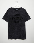 100% Prime Beef - black flock on stone washed black tshirt