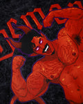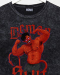 Demon s/ut, flexing tattooed demon hunk on black stone wash - tshirt