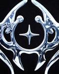 MEDIUM - NXS015: Silver style print on black micro rib muscle crop tank