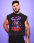SMALL - Demon core: Daddy demon bad boy, stone washed low cut cropped t-shirt
