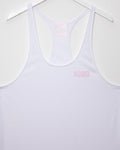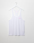 SMALL - Simple HOMO logo, white and pink - razor back tank