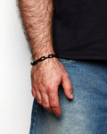 Stainless Silver, Chunky bracelet in black. Worn best with your HOMO wardrobe! Great quality, feels heavy on.