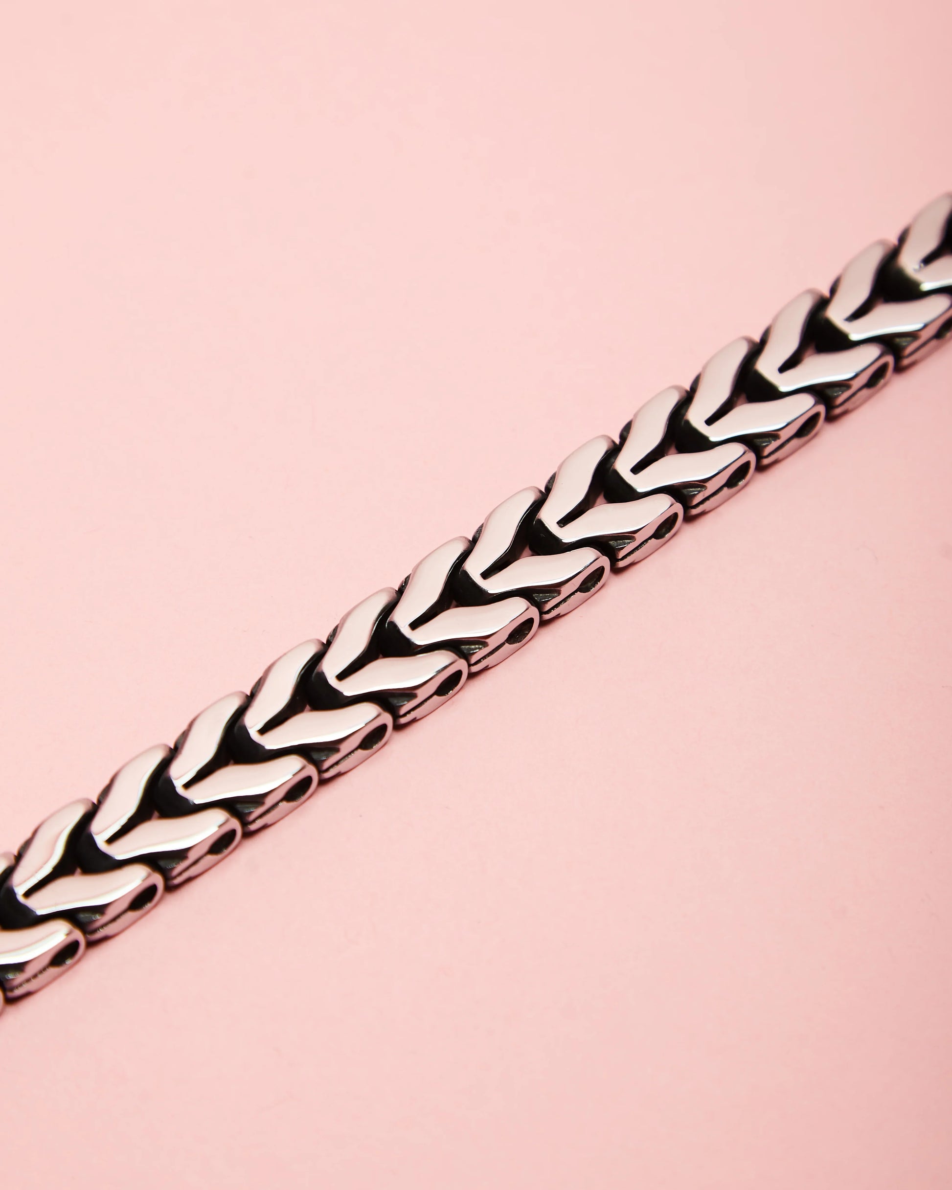 Stainless Silver, delicate bracelet in silver. Worn best with your HOMO wardrobe! Great quality, feels heavy on.