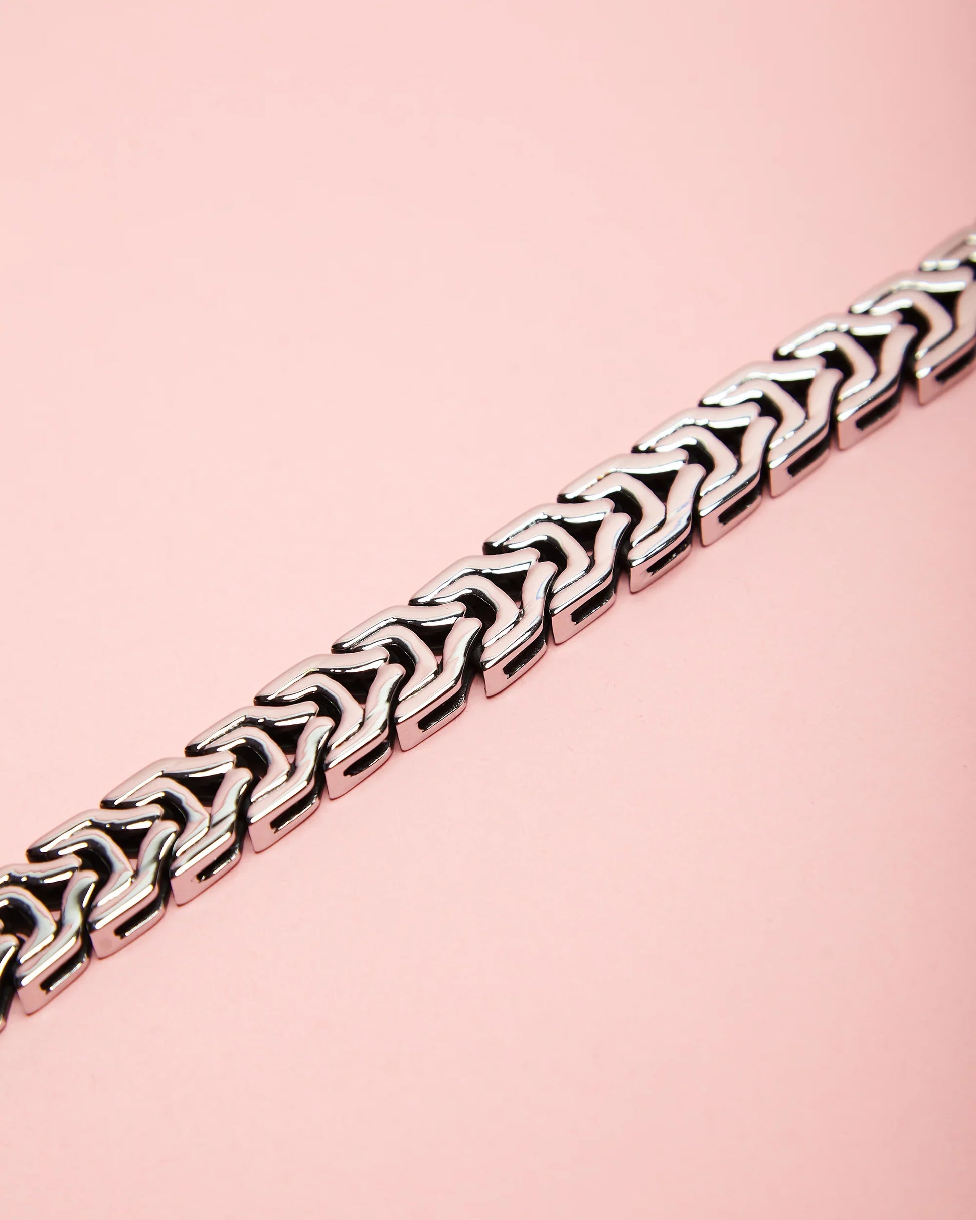 Stainless Silver, Interlocking bracelet in silver. Worn best with your HOMO wardrobe! Great quality, feels heavy on.