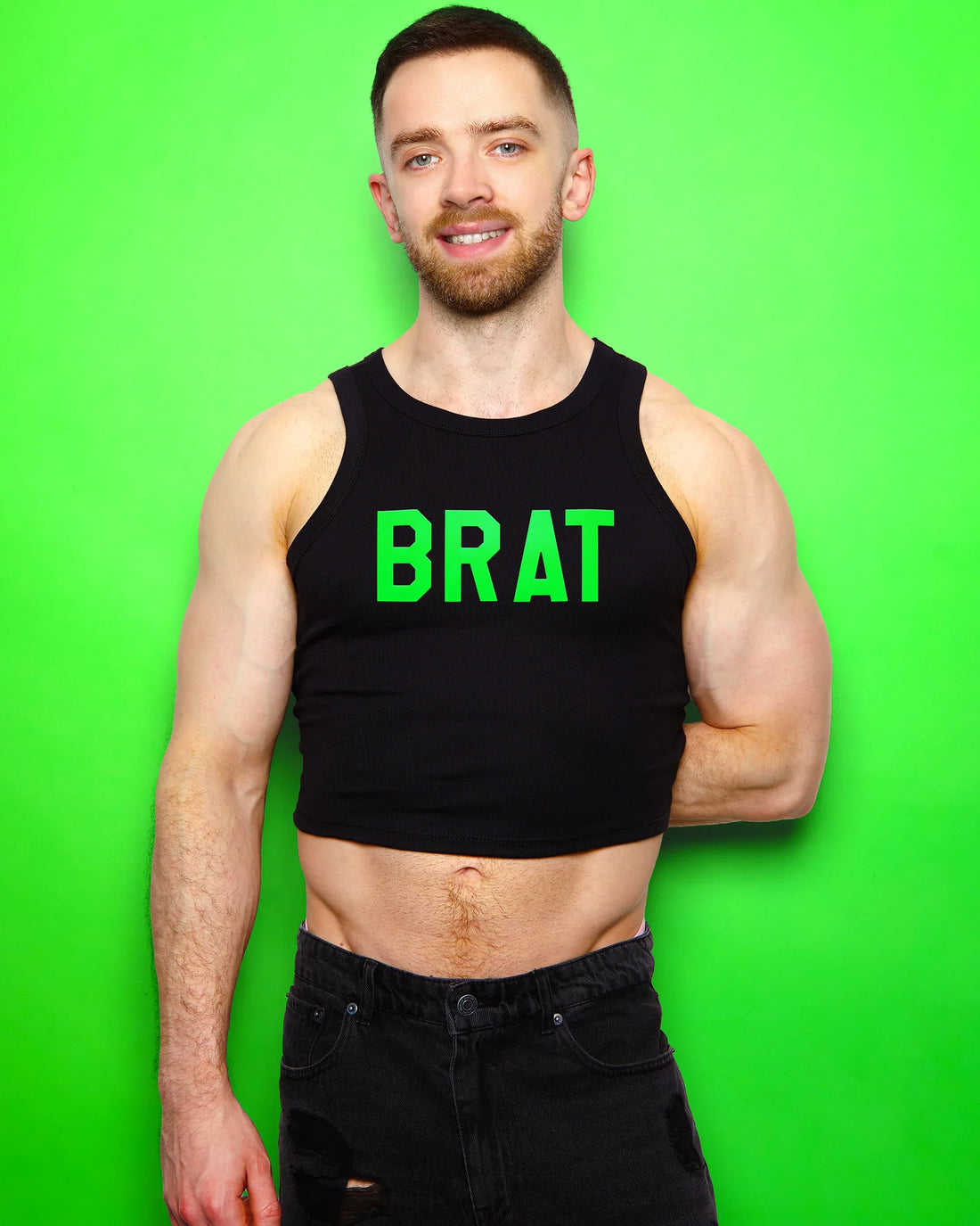 Fluorescent green flock BRAT - low cut tank crop