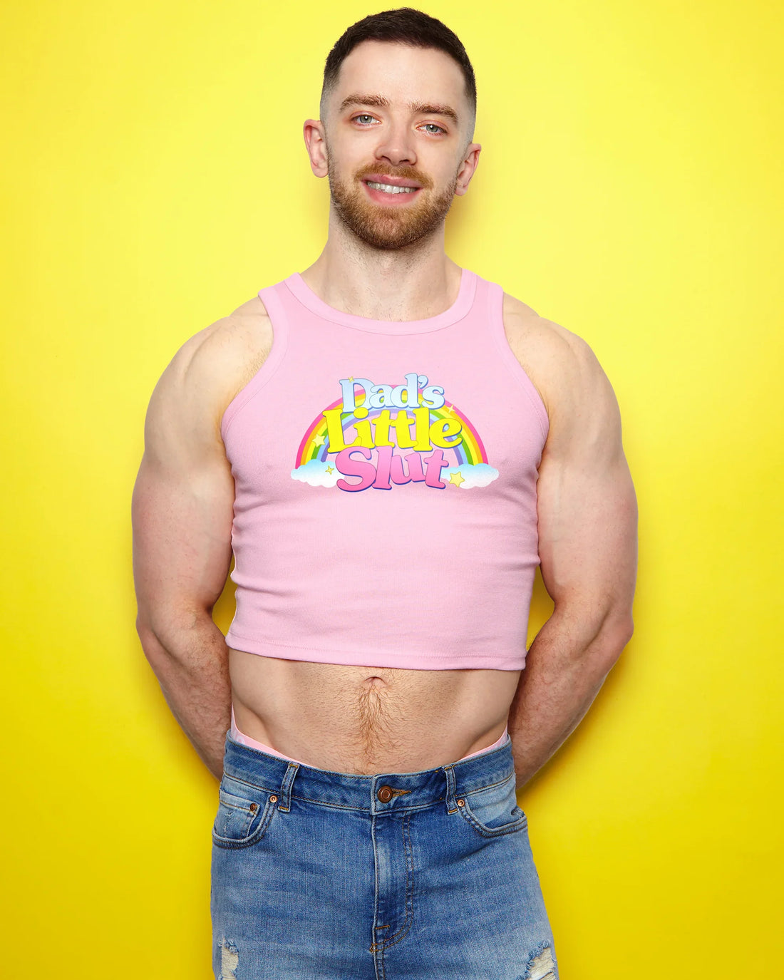 Dad's little s/ut on light pink - low cut cropped tank