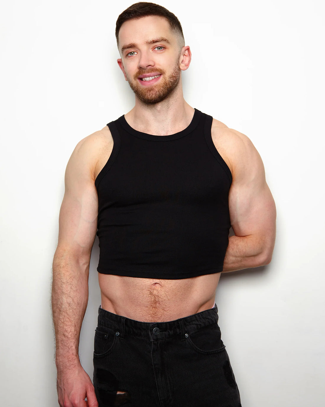 No Print just vibes: black low cut cropped tank