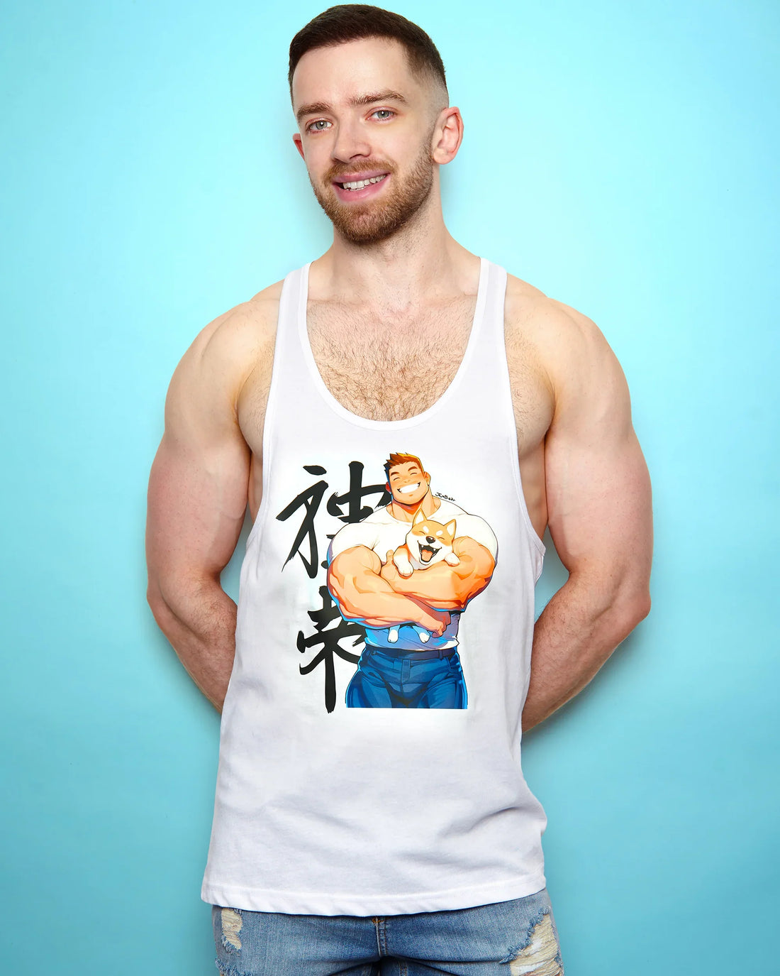 XL - Jojo Bear: Hunky Hank with his Shiba Inu on white - tank top