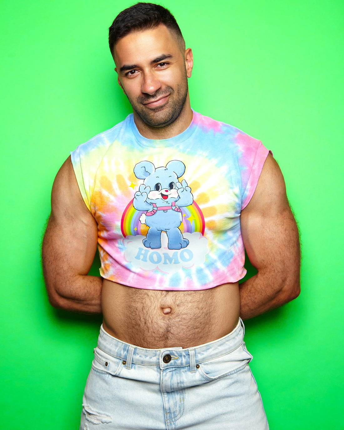 MEDIUM - Cute HOMO Bear on pink - Sleeveless crop-top