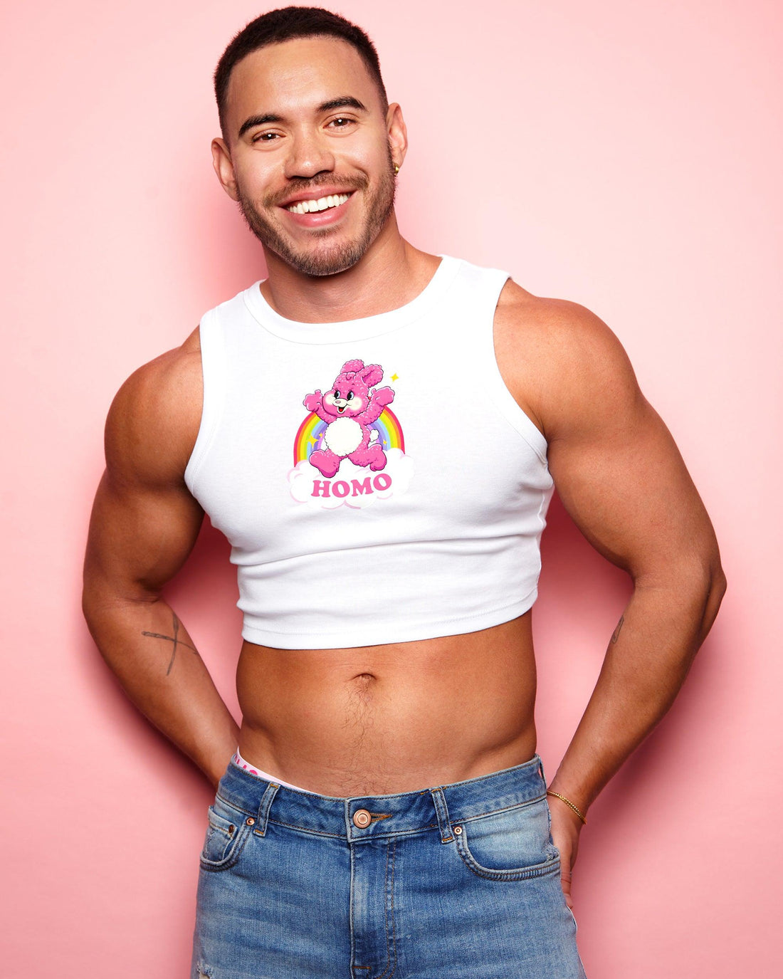 MEDIUM - LIMITED EDITION: Cute HOMO Bear - white tank crop top