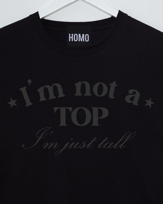 I'm not a TOP i'm just TALL, low cut cropped tee - blackRegular price $43.00 USDRegular priceUnit price per-