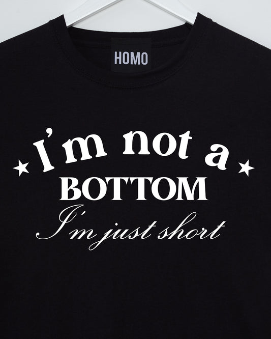 I'm not A BOTTOM i'm just SHORT, low cut cropped tee- black/whiteRegular price $43.00 USDRegular priceUnit price per-