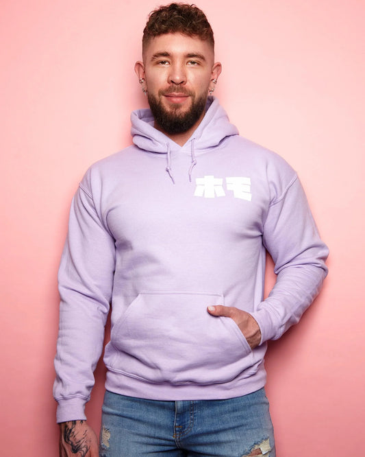 HOMO In Japanese, white on light purple - pullover hoodie.