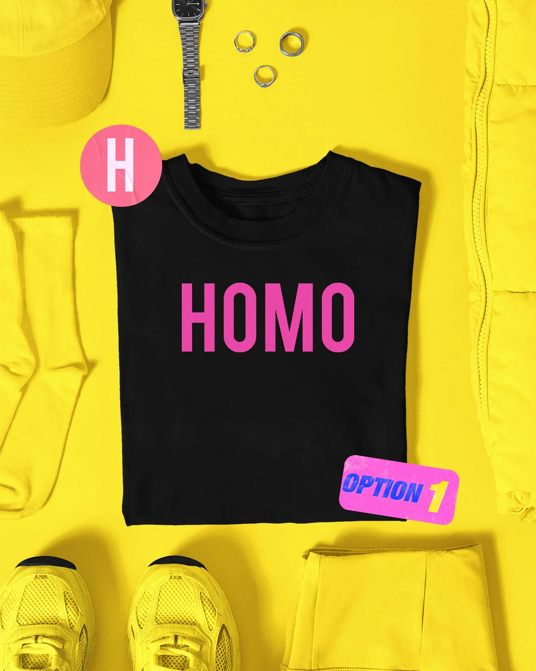 HOMO Logo, Black glitter print on black - low cut cropped tee